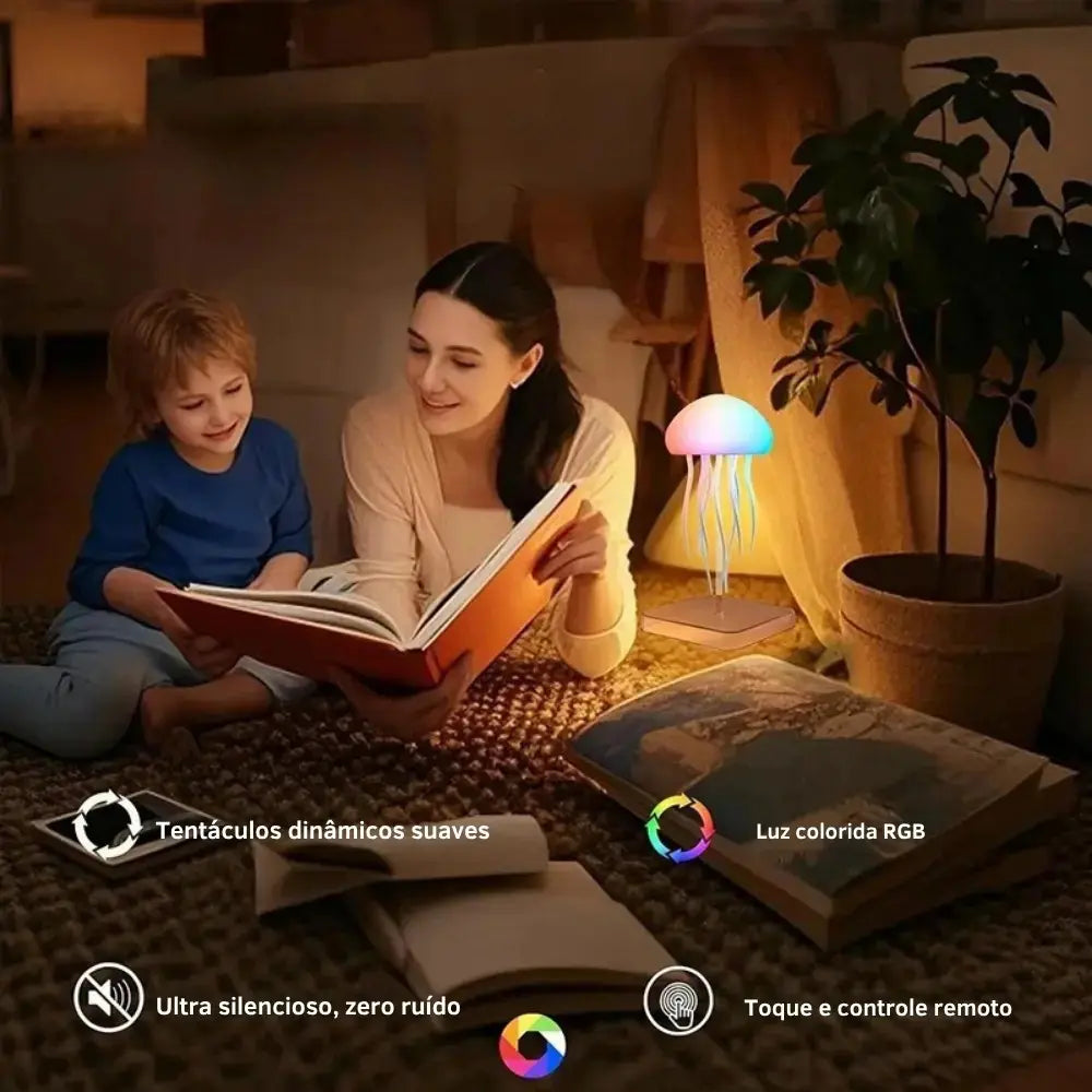 Chegas a casa, pousas as chaves e a noite ainda vai a meio. Acendes o Candeeiro Medusa e, de repente, a sala ganha um brilho suave, quase mágico. A “medusa” começa a flutuar em movimentos lentos, as cores misturam-se num degradê tranquilo e o ambiente muda: o ritmo abranda, a conversa flui, a criatividade acorda.
